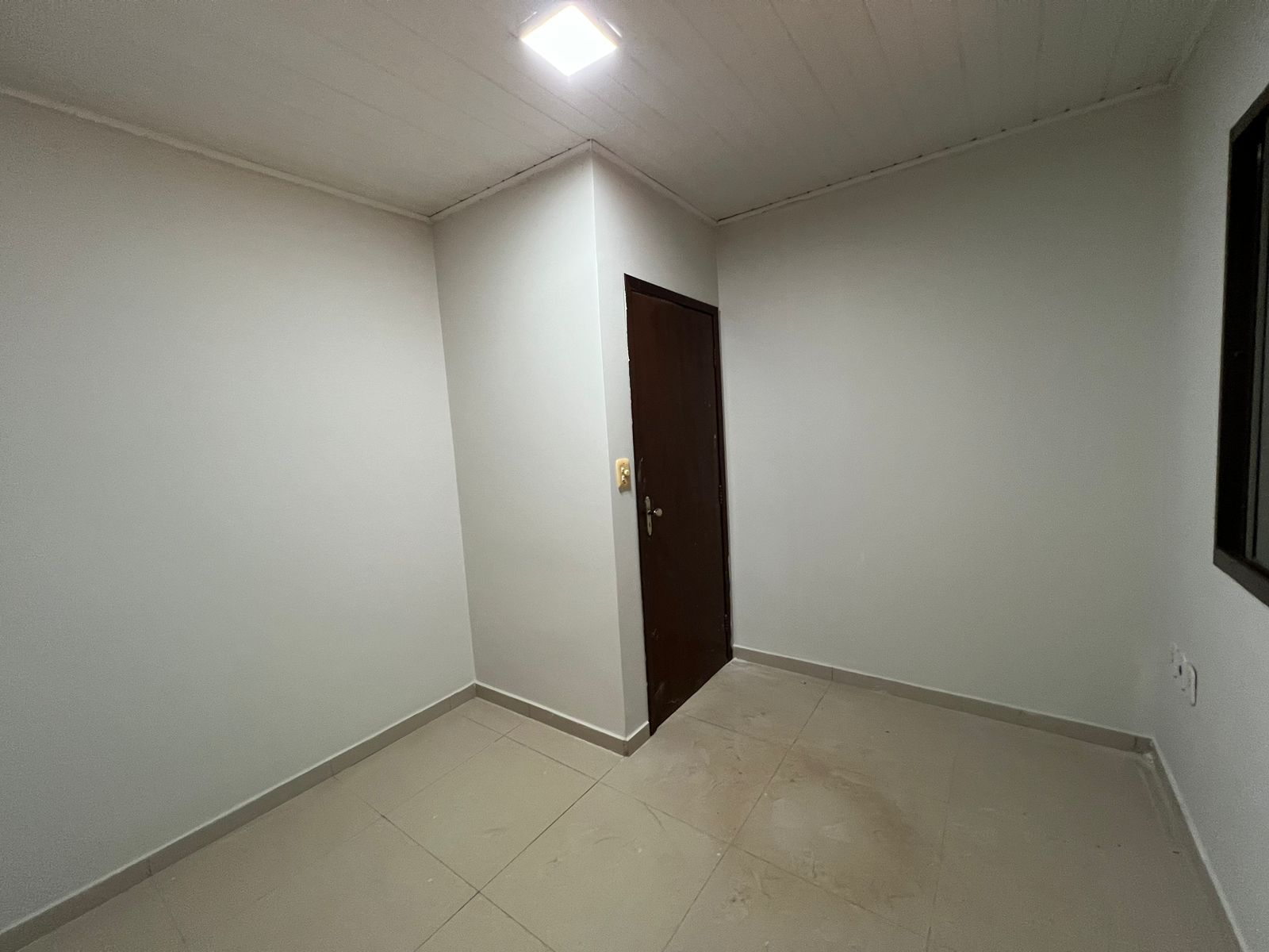 Imóvel com sala, cozinha planejada, uma suíte, um quarto, banheiro social, lavanderia e garagem para um carro.
