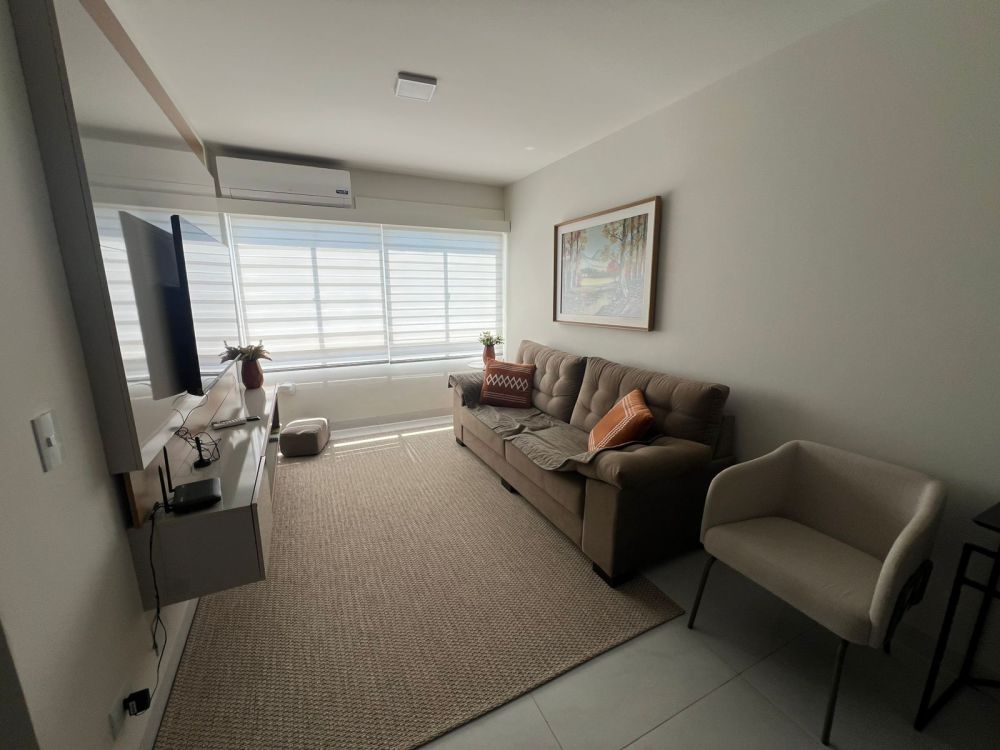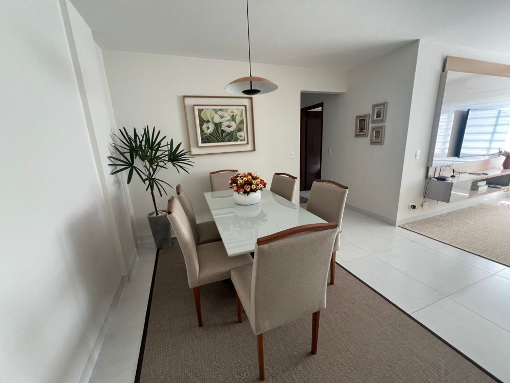 Sala de jantar e sala de TV conjugadas, proporcionando um ambiente amplo e aconchegante